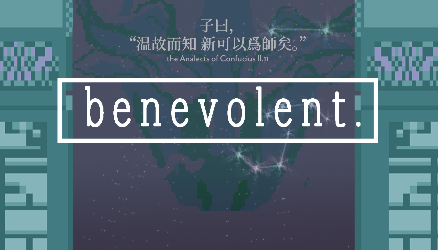 Four Benevolent Creatures of the Si Xiang rule the cardinal directions and each has a story to tell. But as time moves on, we forget our past and where we came from, and the narratives that once guided villages fade out of existence. You, the player, look to obtain the knowledge of the Dragon to guide your people through Spring. You must traverse the Dungeon of the Benevolent in search of the missing history, and fill up your journal to recall the values and virtues of old.